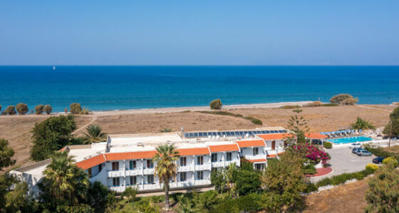 • Das Hotel Sunset Beach ist ein bei Stammgästen beliebtes einfaches Hotel mit 47 Zimmern . Besonders für Kitesurfer liegt es ideal direkt hinter dem Kitecenter. Vom Hotel bis in den Ort Theologos lauft ihr gerade mal 10 Minuten.